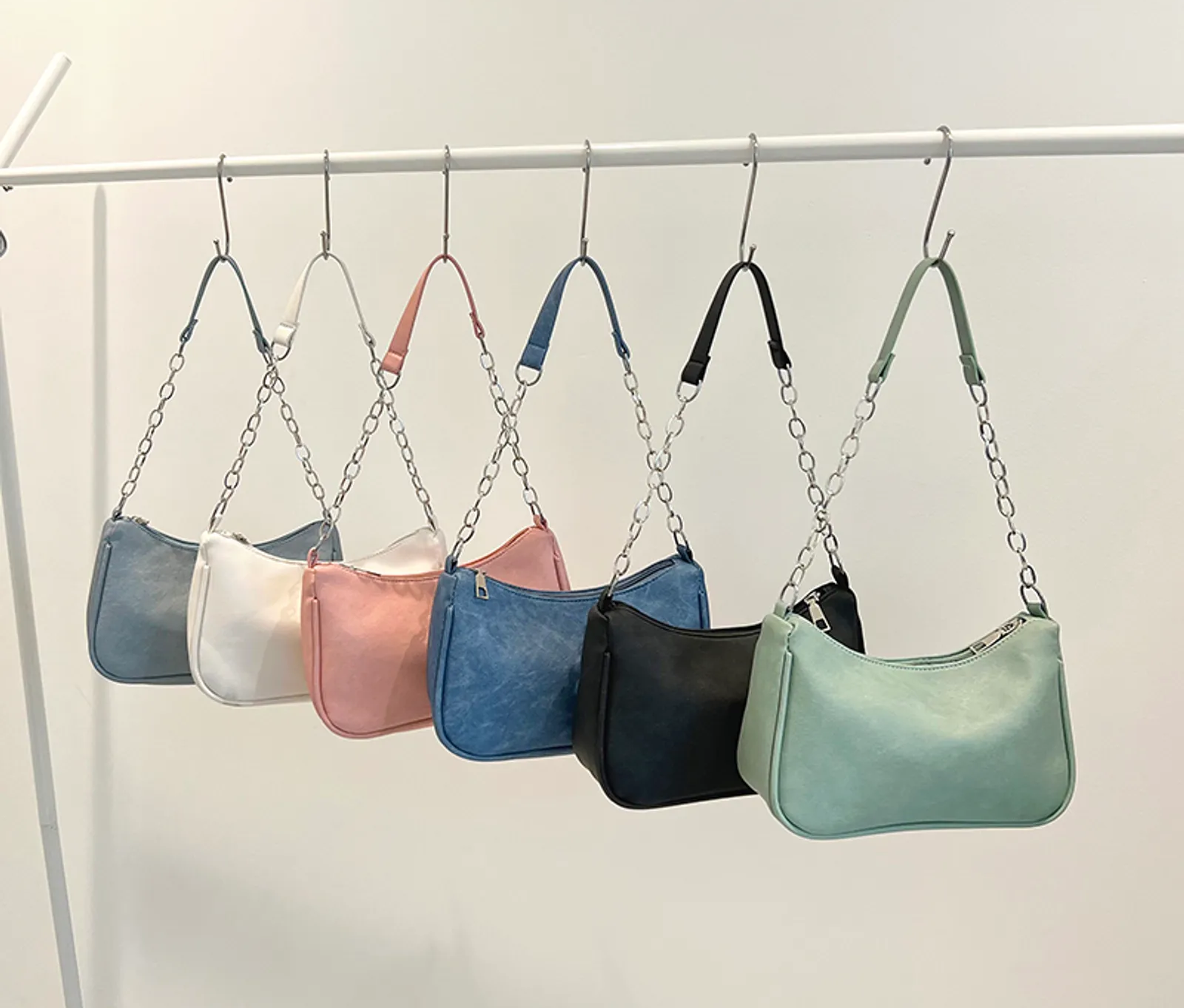Borsa a spalla con catena, disponibile in varie colorazioni.
