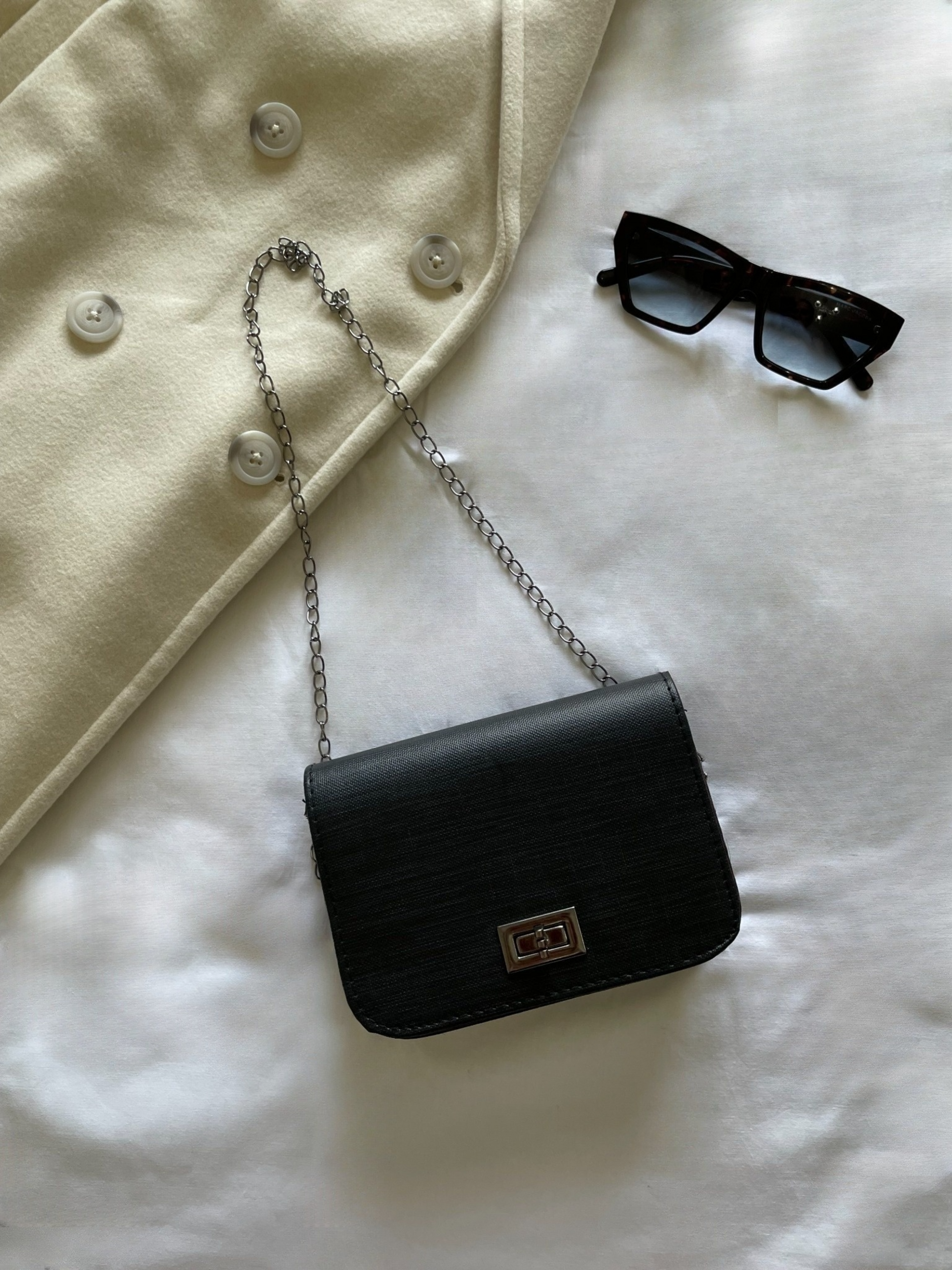 Borsa squadrata con tracolla a catena, disponibile in varie colorazioni.