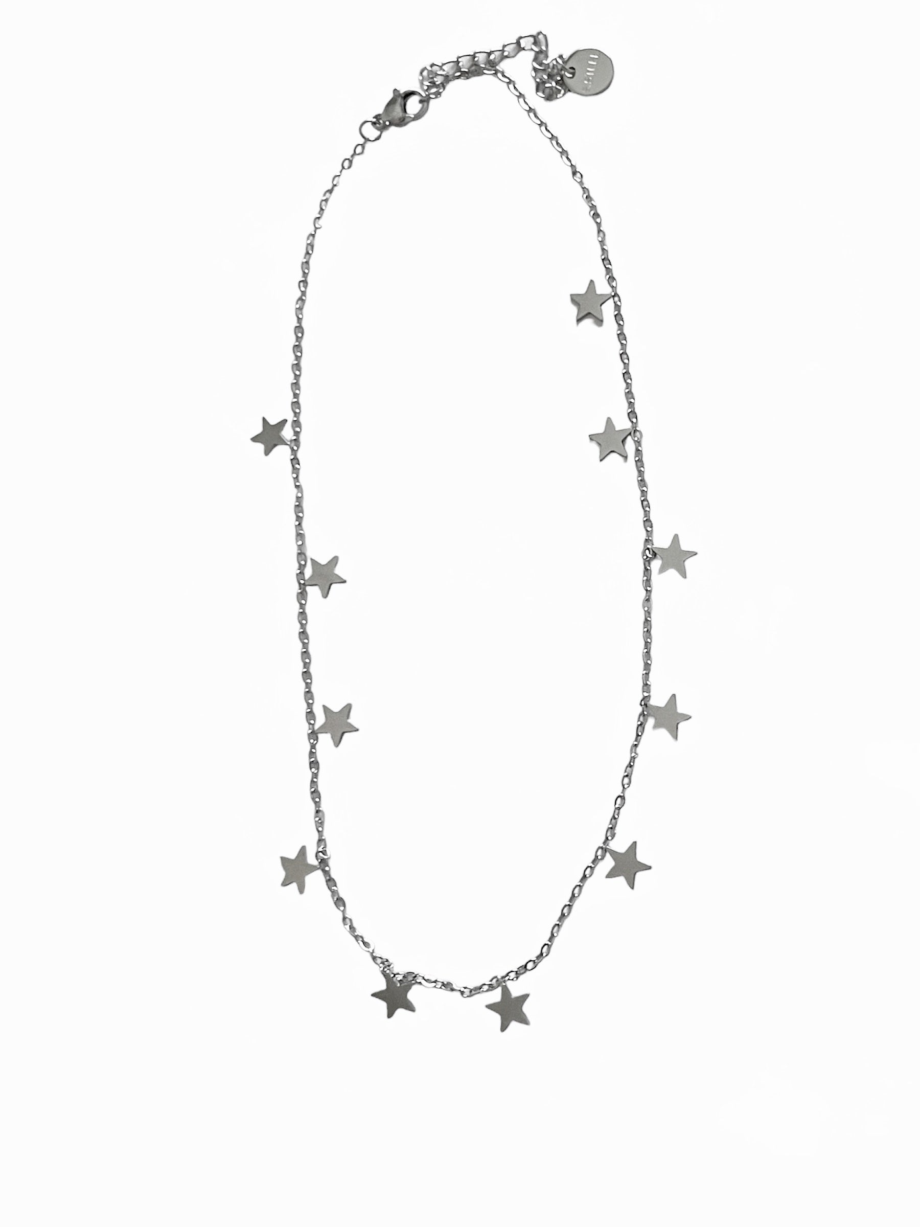 Questa collana, realizzata in acciaio inossidabile, è perfetta per un look quotidiano o per occasioni speciali. La sua catena sottile e raffinata si arricchisce di charm decorativi a forma di stelline, che donano un tocco di magia e raffinatezza all’insieme. Le stelline presentano una superficie lucida, creando un effetto scintillante che cattura la luce ad ogni movimento. Questa collana è ideale per chi ama uno stile delicato e sognante, facilmente abbinabile con altri gioielli o indossata da sola per un look semplice ma elegante. Un accessorio versatile, leggero e alla moda, che aggiunge un tocco di charme a qualsiasi outfit.