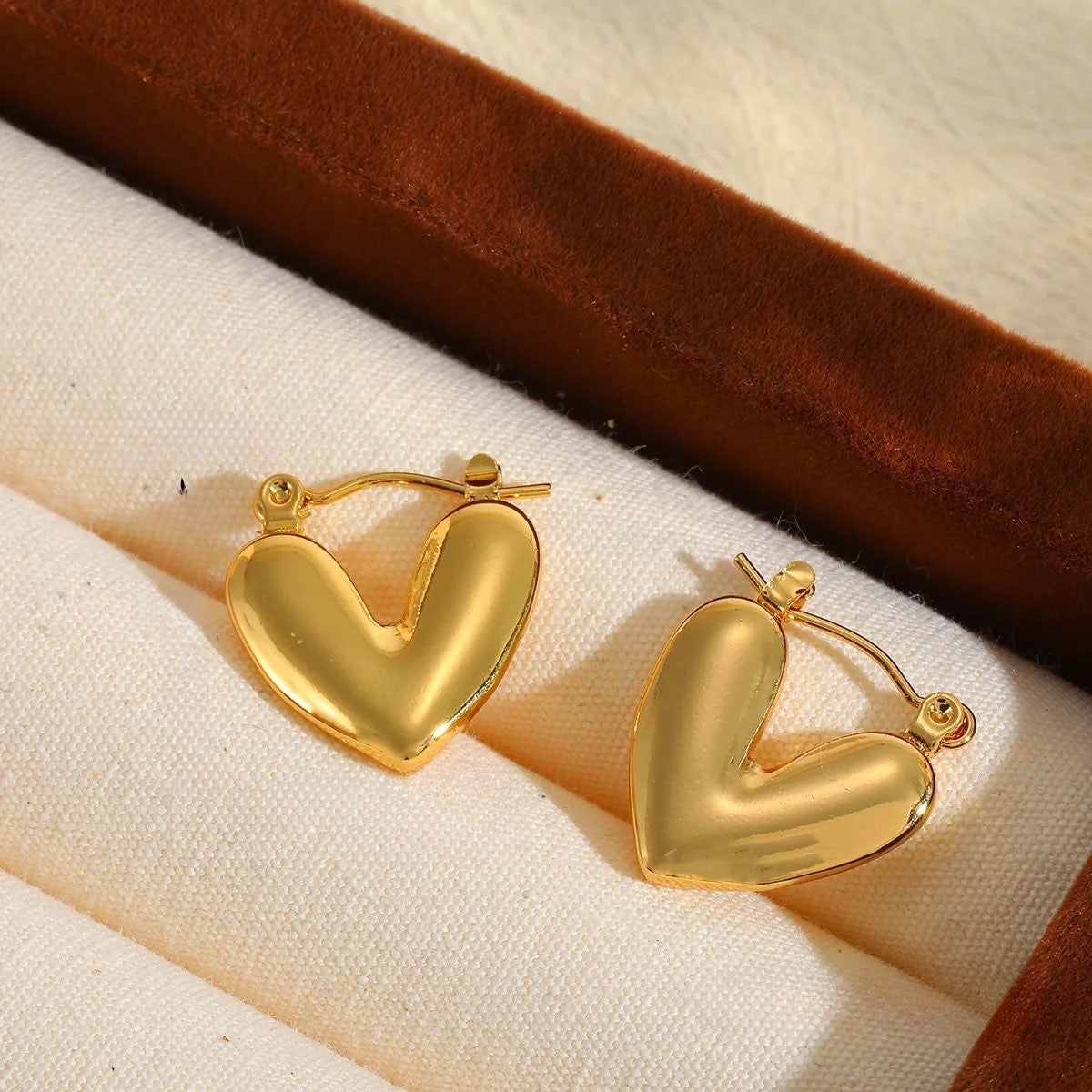 Questi orecchini sono realizzati in acciaio inossidabile placcato oro 18 carati, che conferisce al gioiello un aspetto brillante e resistente. La loro forma a cuore bombato dona un tocco di romanticismo e raffinatezza, rendendoli perfetti per ogni occasione. La superficie arrotondata e lucida crea un effetto tridimensionale che cattura la luce, esaltando la loro luminosità.