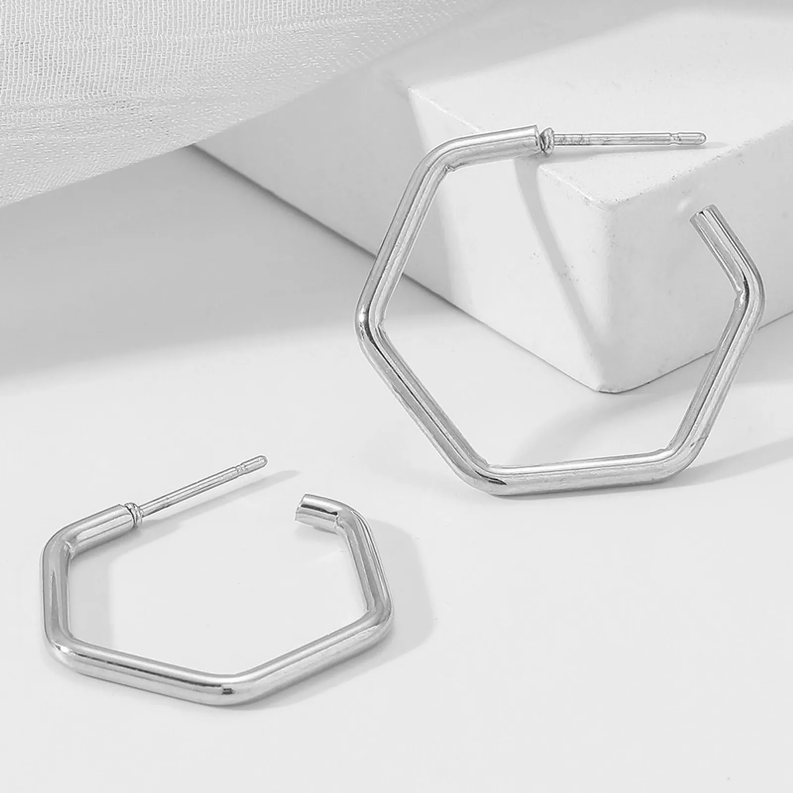 Perfetti per chi ama accessori di design pulito e versatile, questi orecchini rappresentano un dettaglio distintivo e alla moda.. La forma esagonale è moderna e geometrica, conferendo un tocco di stile minimalista e sofisticato. Le superfici sono lisce e riflettenti, valorizzando la brillantezza naturale del metallo. La chiusura a farfallina, anch’essa in acciaio inossidabile, assicura una calzata sicura e comoda, rendendo questi orecchini ideali sia per un uso quotidiano che per occasioni speciali.