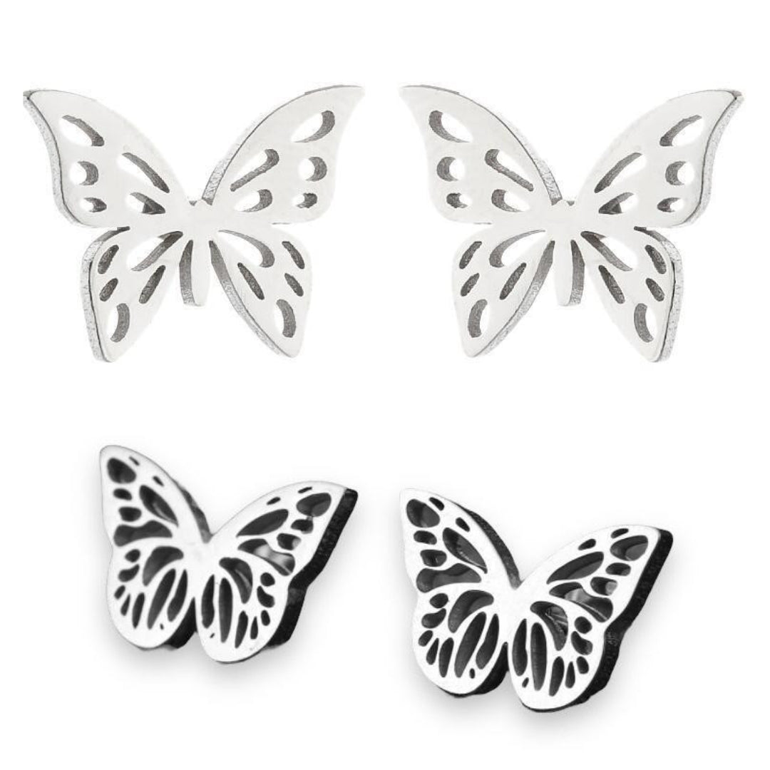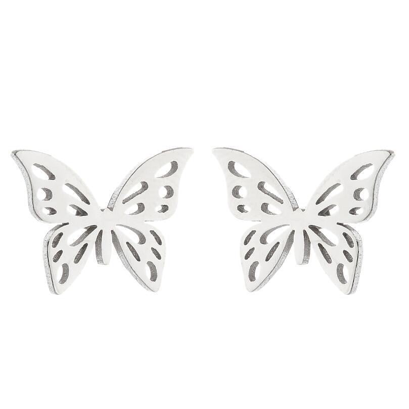 Questi orecchini a forma di farfalla, realizzati in acciaio inossidabile, sono caratterizzati da una superficie liscia e lucente, che riflette la luce con eleganza. Ideali per chi desidera un accessorio sofisticato ma versatile, questi orecchini sono perfetti sia per occasioni speciali che per un look quotidiano. Disponibili 2 varianti.