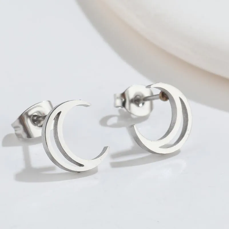 Aggiungi un tocco di magia al tuo look con questi eleganti orecchini a forma di luna, realizzati in acciaio inossidabile. Questi accessori sono un must-have per chi desidera esprimere la propria personalità con eleganza e originalità.
