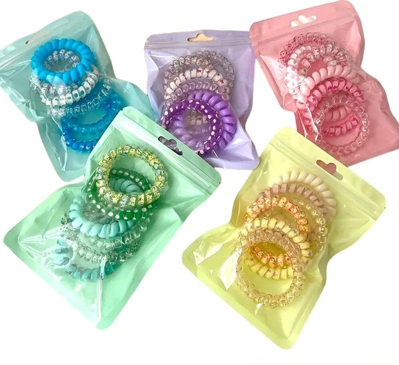 Set di elastici colorati in confezioni da 6 pezzi, disponibili vari colori.